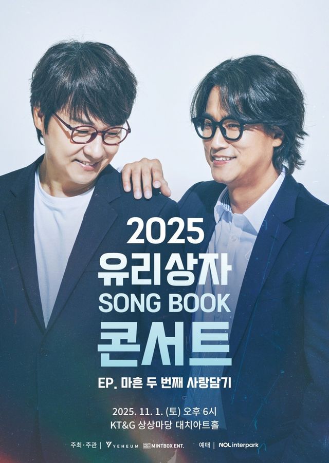 소속사 예음컬처앤콘텐츠는 26일 “유리상자가 오는 11월 1일 오후 6시 서울 강남구 KT&G 상상마당 대치아트홀에서 단독 콘서트를 개최한다”고 밝혔다. 이번 공연은 ‘2025 유리상자 SONG BOOK 콘서트’라는 타이틀로 열리며 부제로는 ‘마흔 두 번째 사랑담기’가 붙었다.
