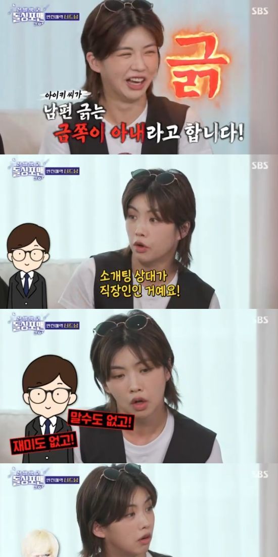 그리고 이날 아이키는 자신과 정반대 스타일의 남편을 언급했다. 아이키는 "남편을 처음 소개받는 날이었는데, 야근에 찌든 직장인인거다. 저와는 너무 달랐다"고 회상했다.