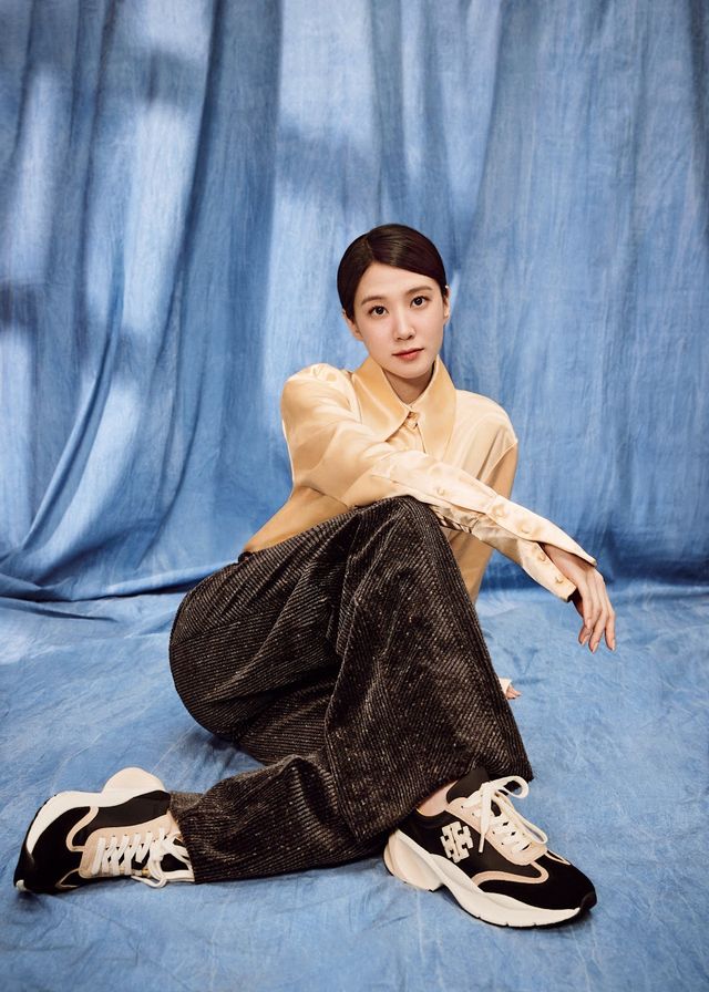 프릴 화이트 블라우스와 핑크빛 과즙미, 트와이스 나연