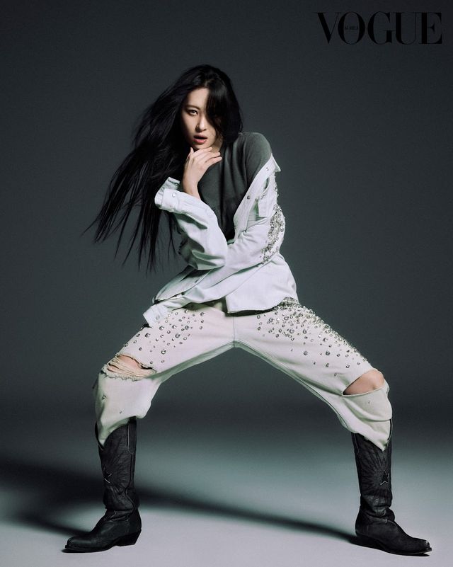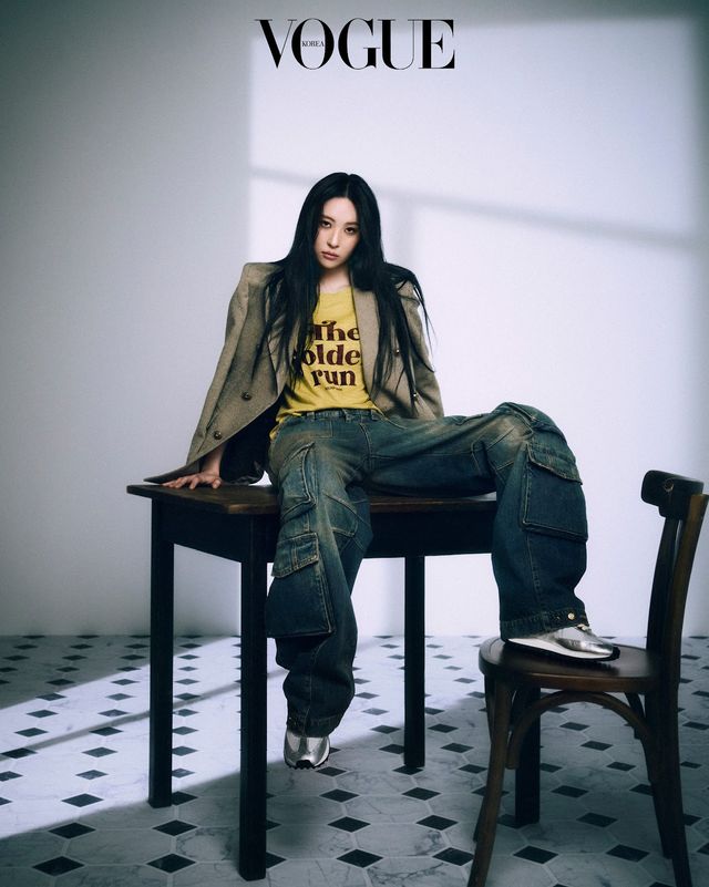연보라색 레이어드와 카키 미니스커트, 있지 유나