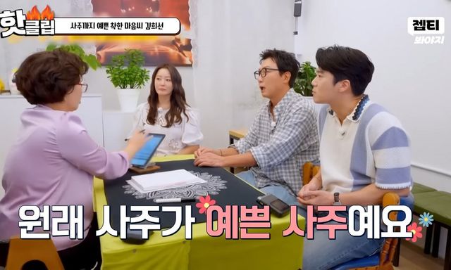 역술가는 또 “원래 사주 자체가 예쁘다. 사주를 입력해 보면 굉장히 착한 사람이라는 게 나온다. 포용력이 뛰어나 어디서든 엄마처럼 감싸주려는 성향이 있다”고 덧붙였다.