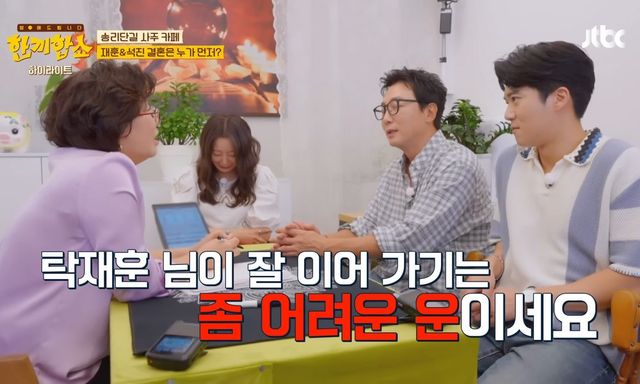 이날 ‘잠실 토박이’ 하석진은 지역 명소로 사주카페를 소개했고 세 사람은 관상과 사주풀이를 함께 받았다.