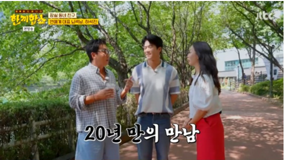 26일 방송된 JTBC 예능 프로그램 ‘한끼합쇼’에는 배우 하석진이 게스트로 등장했다. 이날 석촌호수를 걷던 김희선과 탁재훈 앞에 하석진이 나타나자 김희선은 놀란 듯 반가운 인사를 건네며 “20년 만에 만난다”고 감격을 드러냈다.