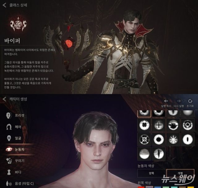 뱀피르는 클래스를 선택하고 캐릭터를 커스터마이징할 수 있다. 사진=김세현 기자