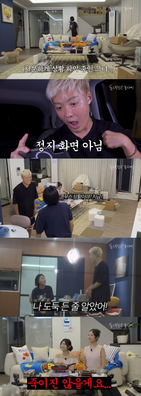 이상화도 맞절을 하며 "이게 무슨 상황이야"라고 어리둥절해했는데, 강남이 집으로 들어오자 한숨을 내쉬며 "왜 우리 집에 오빠가 없어? 나 도둑 든 줄 알았어"라고 말했다.