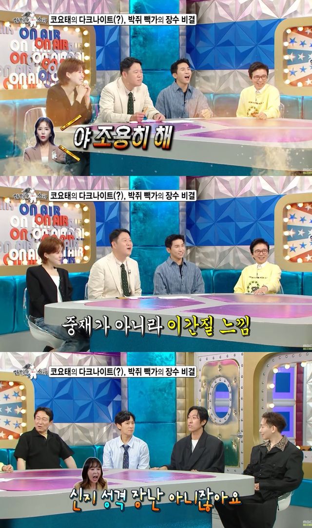 이어 "옛날에는 코요태가 진짜 많이 싸웠다. 당시 신지가 장난이 아니었다"며 "양쪽에서 박쥐처럼 여기로 붙었다 저기로 붙었다 했다. 신지에게는 종민이 형 욕을 하고, 종민이 형에게는 신지 욕을 했다"며 남다른 중재(?) 비결을 공개해 폭소를 자아냈다.