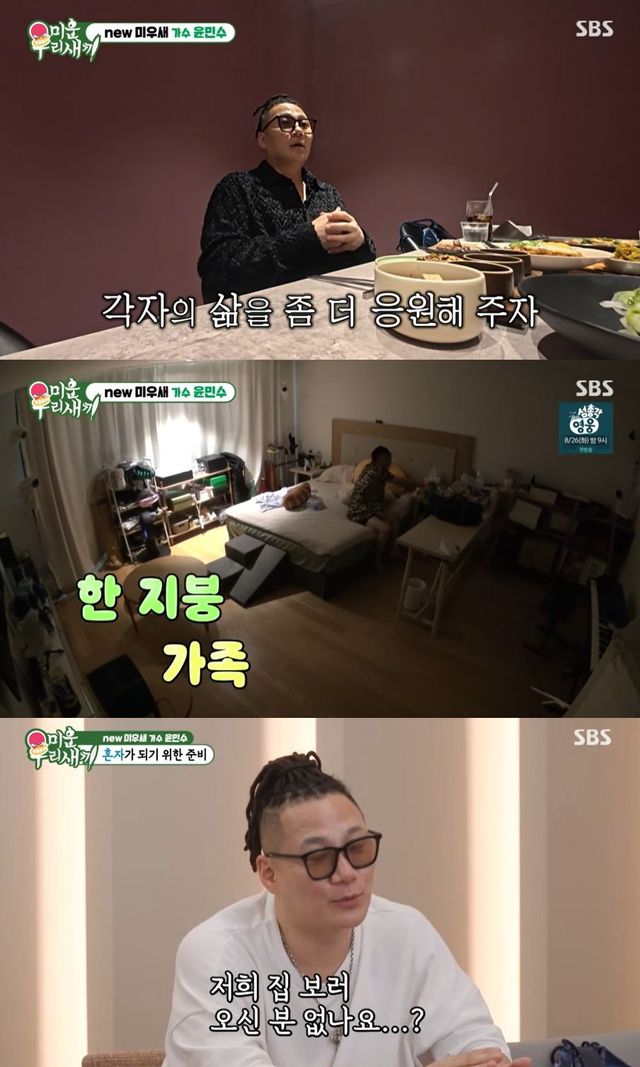 두 사람이 정리해야 할 부분 중 하나는 '집 매매'라고. 전처와 같이 사는 집에서의 일상을 보여준 윤민수는 이후 주거 분양 마케팅 일을 하는 친한 지인을 만났다. 지인은 "집 때문에 고민이지?"라며 윤민수를 걱정했고, 윤민수는 "집 보러온 분 없냐", "관심 있다고 전화하는 사람도 없냐"며 답답하는 모습이 전파를 타기도 했다.