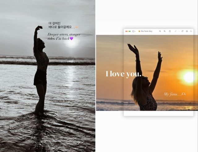 지난 26일 바다는 개인 계정을 통해 “더 깊어진 바다로 돌아갈게요”, “사랑해요 나의 팬들”이라는 문구와 함께 두 장의 사진을 게시했다. 사진 속 바다는 자연 속에서 평온한 모습을 보이며 복잡했던 마음을 정리하고 새로운 다짐을 하는 듯한 분위기를 풍겼다.