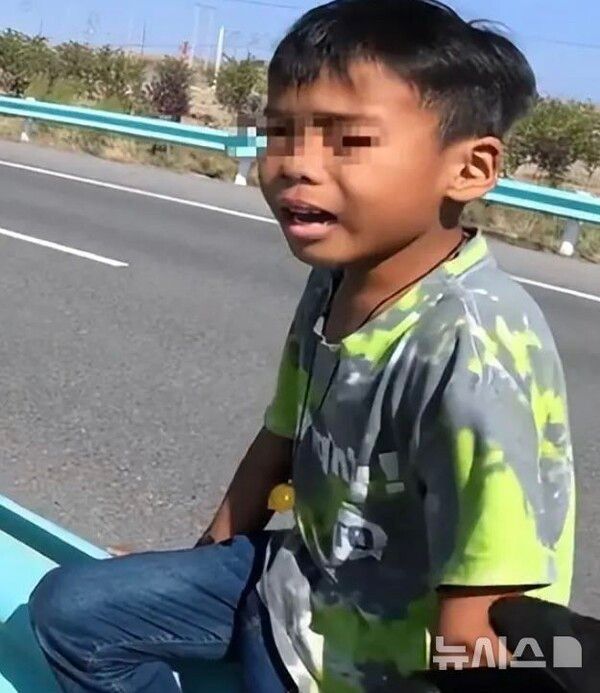 공개된 영상 속 아이는 7~8살로 추정되며 지나가는 차량에 손을 흔들며 울고 있는 모습이 담겼다.