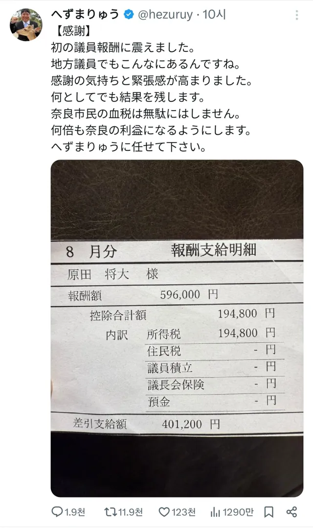 60만엔 가까운데 소득세 떼서 40만엔 들어옴