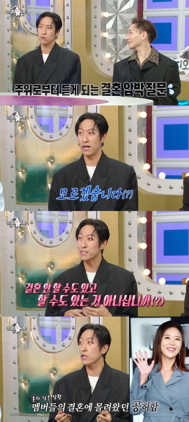 빽가는 결혼 계획이 있냐는 질문에 "모르겠다"라며 "모르겠다는 건 안 할 수도 있고 할 수도 있는 거 아니냐. 그래서 저는 그냥 무조건 모른다고 한다. 종민이 형이 어디 가서 물어보면 모른다고 하는 게 제일 편하다고"라고 이야기해 웃음을 안겼다.