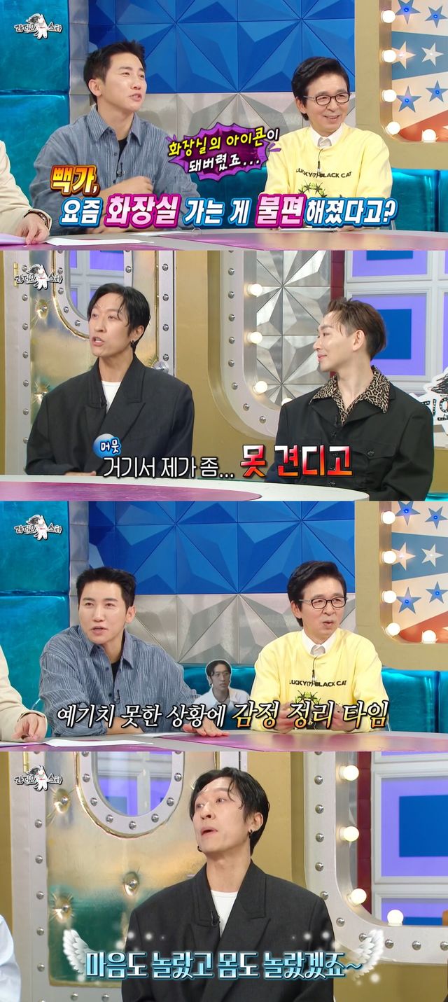 이를 들은 김구라가 "그때 놀라서 화장실을 가고 싶었냐. 그 영상을 못 본 사람도 있으니까" 설명해달라고 했고, 유세윤이 "마음도 놀라고 몸도 놀라겠죠"라고 말하자, 빽가는 "맞다"라며 공감해 눈길을 끌었다.