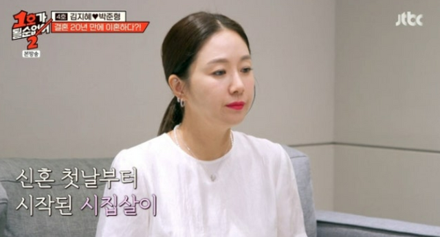 김지혜는 28일 방송된 JTBC 예능프로그램 ‘1호가 될 순 없어2’(이하 ‘1호가’)에 남편이자 코미디언인 박준형과 이혼 체험을 했다.