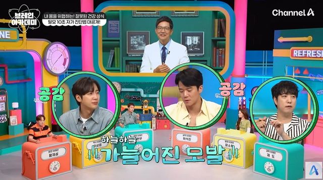 지난 28일 방송된 채널A ‘브레인 아카데미’ 14회에서는 전현무, 하석진, 이상엽, 윤소희, 황제성, 궤도가 ‘건강 마스터’ 함익병 원장이 출제한 문제를 연이어 맞히며 9번째 지식 메달을 획득했다. 이날 함익병 원장은 “생활에 밀착된 건강 비법을 알아보자”라며 ‘건강’ 분야 퀴즈를 시작했다.
