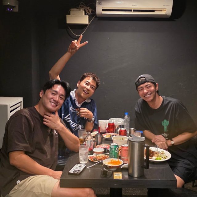 사진 속에는 전현무와 오상진 아나운서, 박천휴 작가가 먹고 마시며 식사를 즐기는 모습이 담겼다. 환하게 웃는 세 사람의 표정에서 화기애애한 분위기가 전해진다.