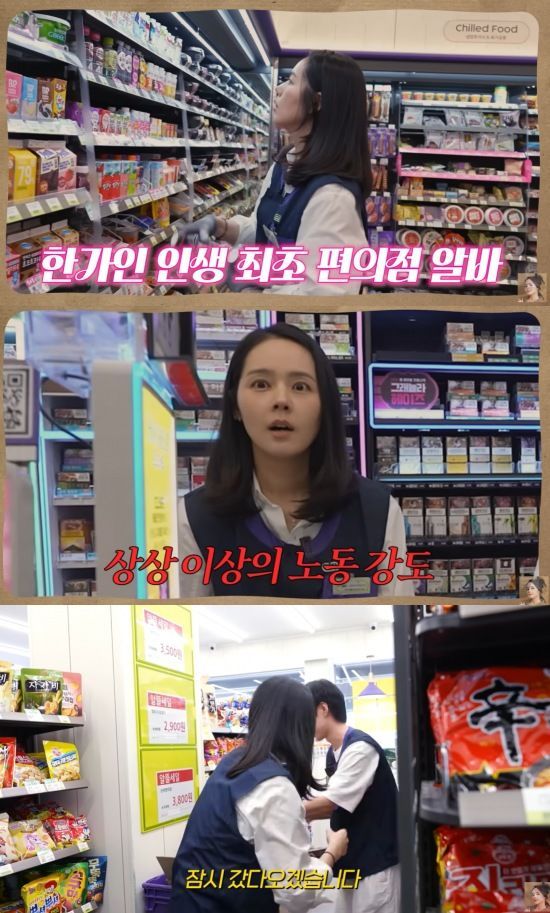 배우 한가인이 편의점 아르바이트에 도전했다.