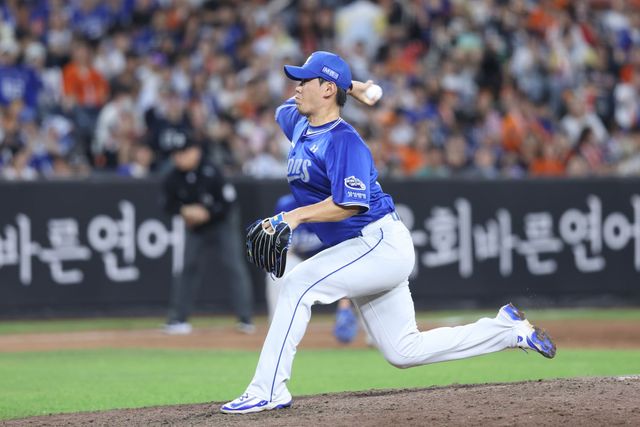 (엑스포츠뉴스 대전, 김유민 기자) 삼성 라이온즈 마무리 투수 김재윤이 직전 경기 패전의 아쉬움을 만회했다.