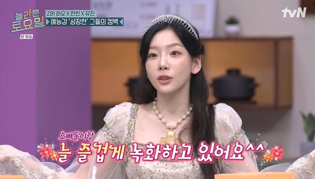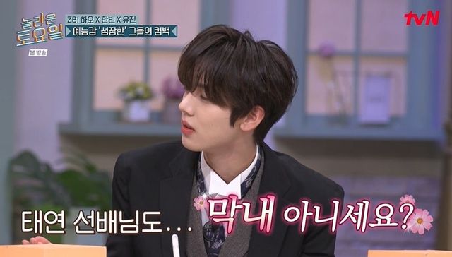 [TV리포트=남금주 기자] 소녀시대 태연이 막내냐는 제베원 한유진의 질문에 너스레를 떨었다.