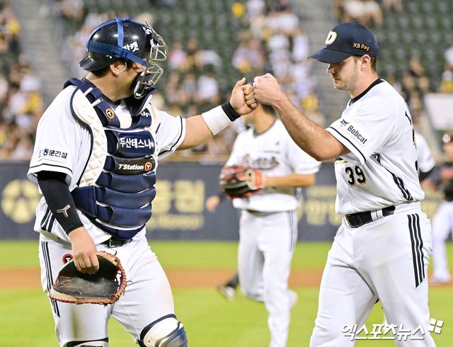 이어 "6회가 깔끔하지는 못했던 걸 알고 있다. 좌타자들이었기 때문에 내가 해결했어야 했다. 조금 흔들리긴 했지만 정말 감사하게도 강승호, 박준순 등 야수들의 도움으로 잘 풀어나갈 수 있었다"라고 덧붙였다.
