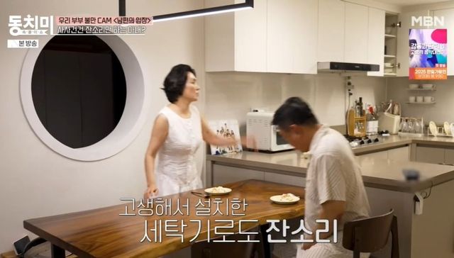 또한 아내는 이효정이 예전 60평대 집에 쓰던 커튼을 그대로 달아놓은 걸 보고 잔소리를 했다. 이효정이 설치한 세탁기도 불만이 있었다. 이를 보던 패널들은 “모든 걸 혼낸다. 아침에 한 일을 다 뭐라고 한다”라며 웃었다. 이를 지켜보던 최홍림은 “(아내는) 감독하고 싶은 생각도 없고, 남편 있는 자체가 짜증 나는 거다”라고 진단했다. 그러나 김현숙은 아내의 입장에 공감하며 “분명 (아내가 여러 번) 말했는데, 내 말을 귓등으로도 안 듣는다고 생각하는 것 같다”라고 했다.