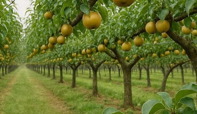 배밭 모습. 기사 이해를 돕기 위해 AI를 활용해 제작한 자료 이미지입니다. 실제 모습과 다소 차이가 있을 수 있습니다.