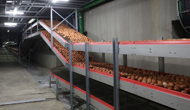 계란을 자동으로 양계장에서 세척 장소로 이동시키고 있는 모습. 기사 이해를 돕기 위한 자료 사진입니다. / 연합뉴스