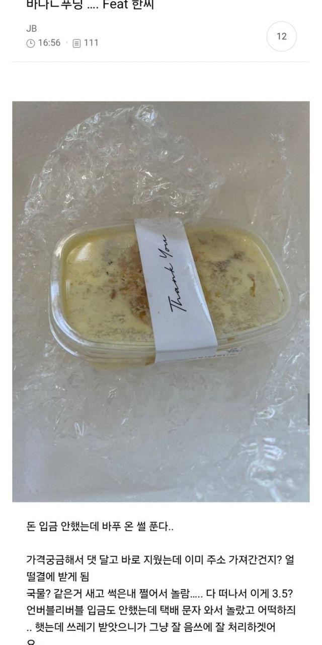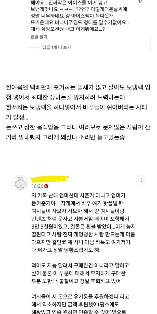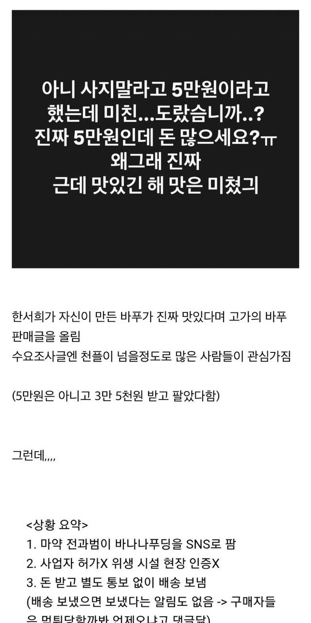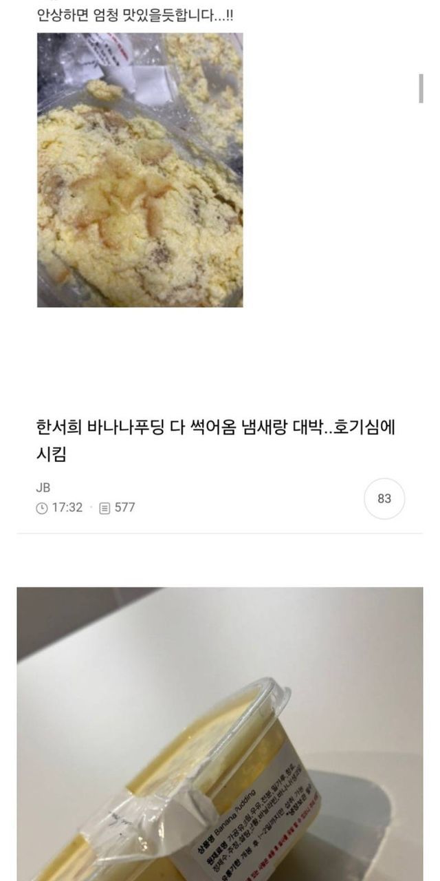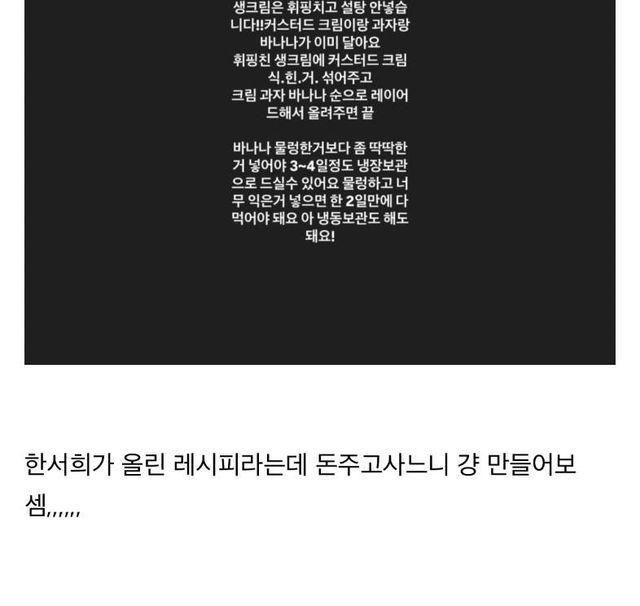 여초에서 난리났었던 한서희 상한 바나나푸딩 사건