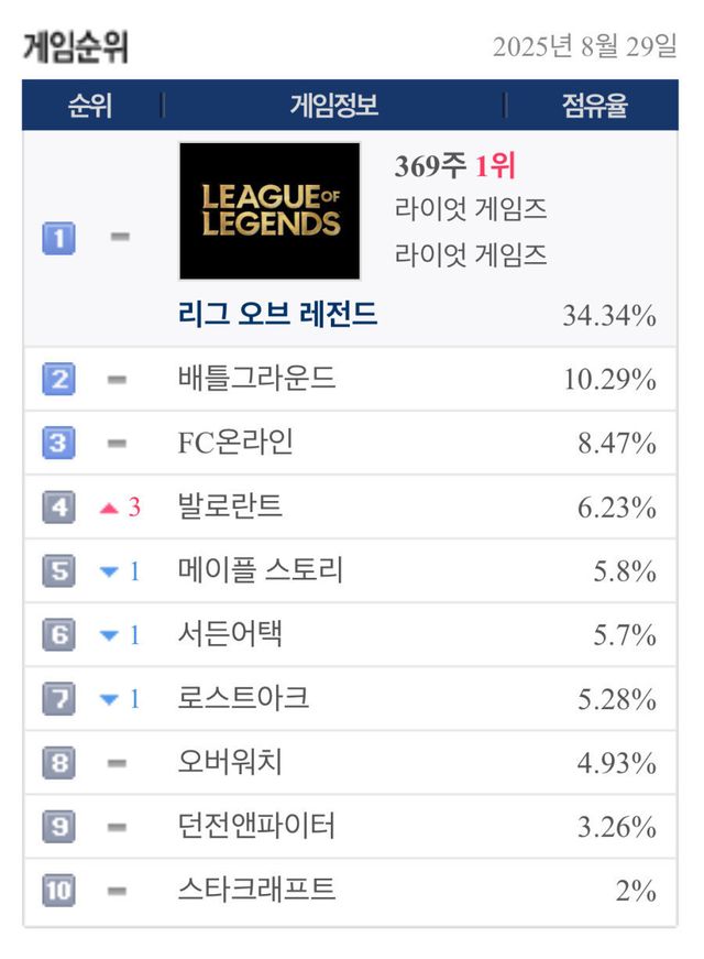 NC MMORPG 가 순위에서 사라진거 외에는 거기서 거기..?