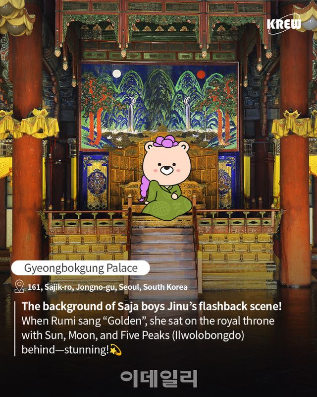 비짓코리아(VISITKOREA) 플랫폼과 사회적관계망서비스(SNS)를 통해 애니메이션 배경지를 소개하며, 경복궁·북촌·낙산공원 등의 사진에 한국관광 캐릭터 ‘킹덤프렌즈’를 합성해 재미 요소를 더했다. 주인공들이 OST를 부른 낙산공원은 이미 국내에서는 잘 알려졌지만, 이번 기회를 통해 해외 신규 팬들에게도 각인되고 있다.