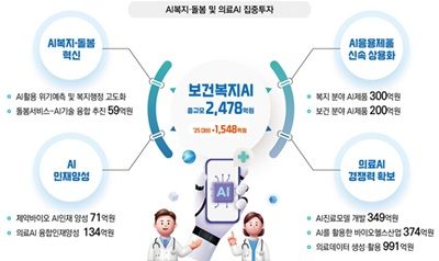 보건복지부는 지난 8월 29일 2026년 예산안에서 AI복지·돌봄 및 의료AI에 2,478억원을 편성했다고 발표했다.