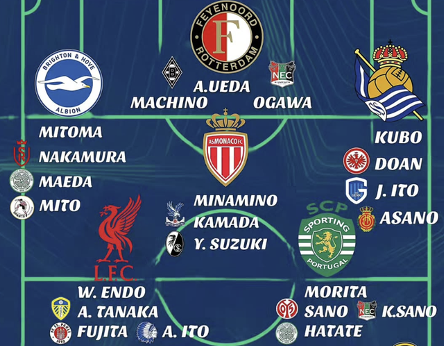 부상 선수들이 복귀하면 일본 대표팀의 유럽파 비중은 90%에 육박할 전망이다. 실제 유럽의 축구 매체들은 일본 대표팀이 골키퍼 1~2명을 빼고 26명 월드컵 최종엔트리를 전부 유럽파로, 그것도 5대 빅리그와 바로 아래 수준인 벨기에, 네덜란드애서 뛰는 선수들도 채울 수 있다며 감탄하는 중이다.