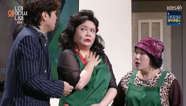 그런 가운데 ‘니가 왜 여기서 나와’ 코너에선 김영희, 이현정, 김지영이 막장 드라마에 악역으로 나온 정승환이 오자 메뉴판이 없다고 거짓말했다. 정승환이 콜라 쿠폰을 내밀자 김영희는 콜라를 흔든 후 가져다주기도.