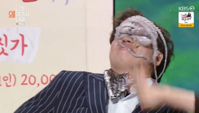 [TV리포트=남금주 기자] 김영희가 정승환 얼굴에 낙지를 투척했다.