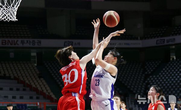 뉴시스 보도에 따르면, 신한은행은 30일 오후 2시 부산 사직실내체육관에서 열린 일본 덴소와의 대회 B조 조별예선 첫 경기에서 51-96 대패를 당했다.