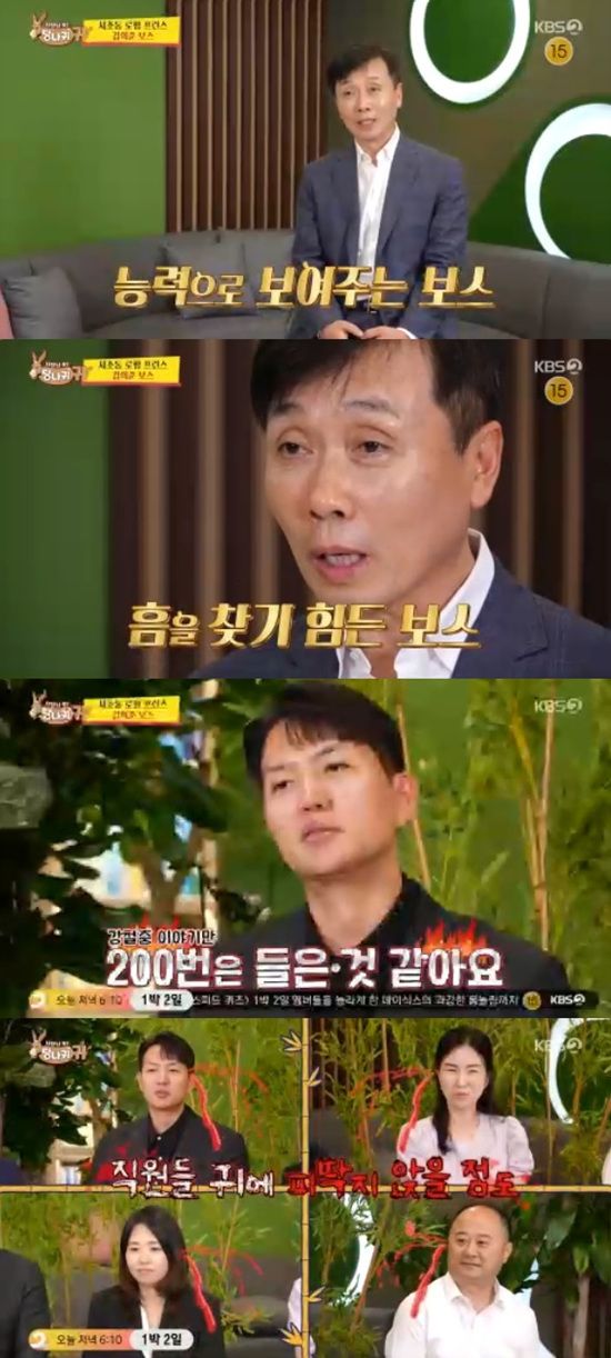 김희준은 어떤 보스인지 묻는 질문을 받더니 "능력으로 보여주는 보스다. 수임률 100%다. 흠을 찾기 힘든 보스다"라고 자신했다.