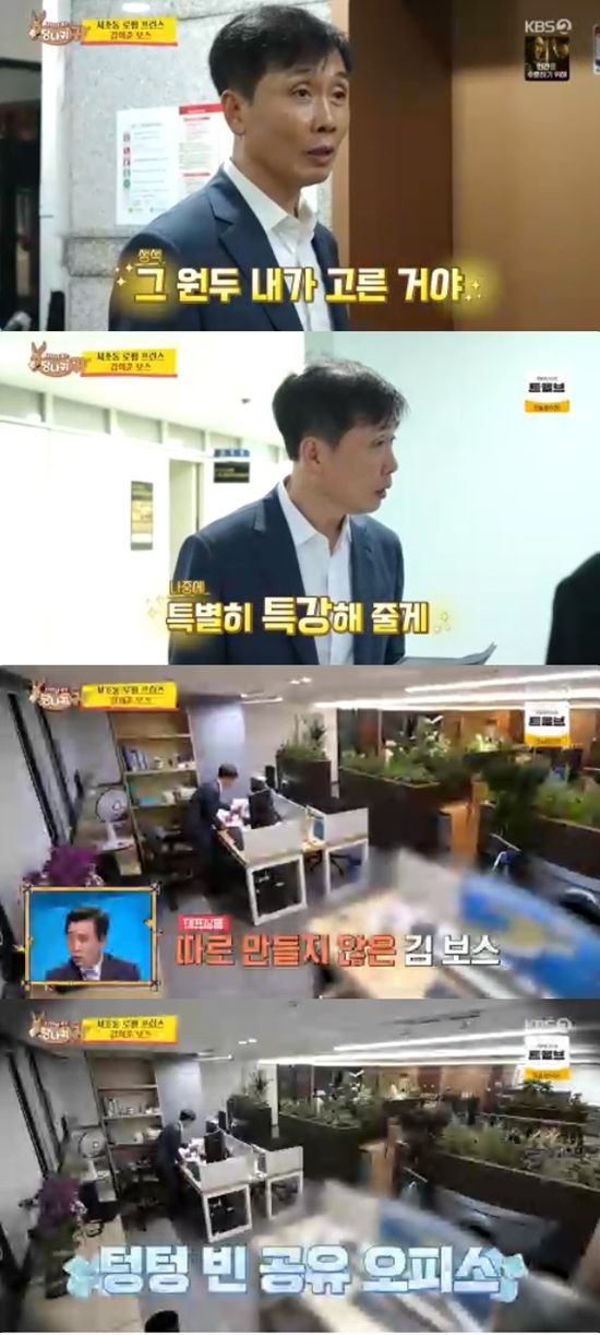 김희준은 대표실이 아닌 오픈된 공간으로 들어갔다. 김희준은 직원들에게 모범을 보이고자 자신만 따로 방을 만들지 않았다고 했다.