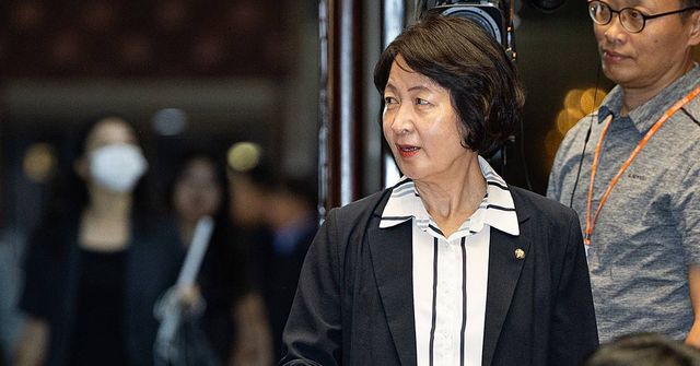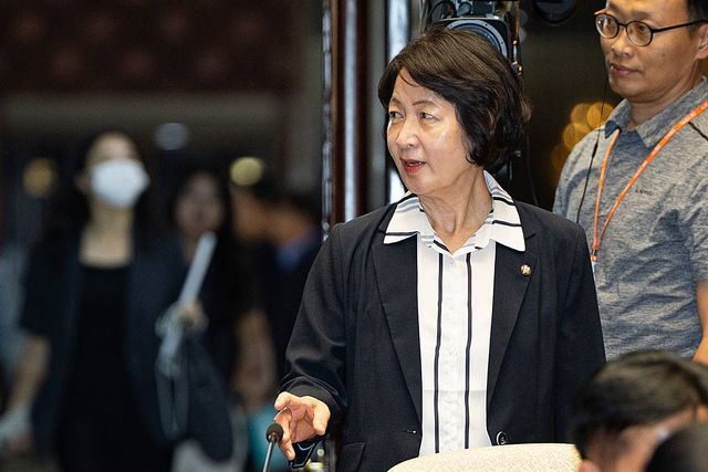 추미애 국회 법제사법위원장이 지난 27일 서울 여의도 국회에서 열린 더불어민주당 의원총회에 참석하고 있다 / 뉴스1
