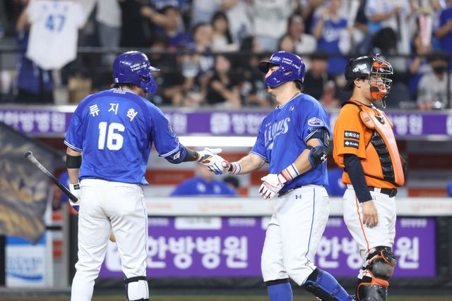 선두타자 김성윤을 포수 파울플라이로 잡아낸 김서현은 대타 이성규에게 몸에 맞는 볼을 허용한 뒤 디아즈에게 4-6-3 병살타를 유도, 이닝을 세 타자로 마무리했다.