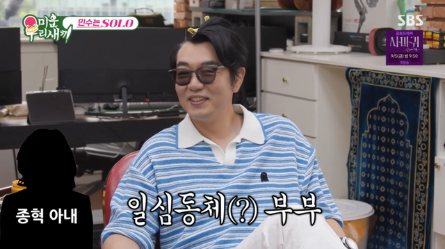 이후 윤민수는 이종혁의 아내에게도 비슷한 반응을 들었다. 윤민수가 이종혁의 아내에게 “나 싱글이다. 싱글라이프를 즐기겠다”고 선언하자 “축하한다”고 쿨하게 응수한 것. 이에 윤민수는 “어떻게 부부가 (반응이) 똑같냐”며 허탈해해 웃음을 안겼다.