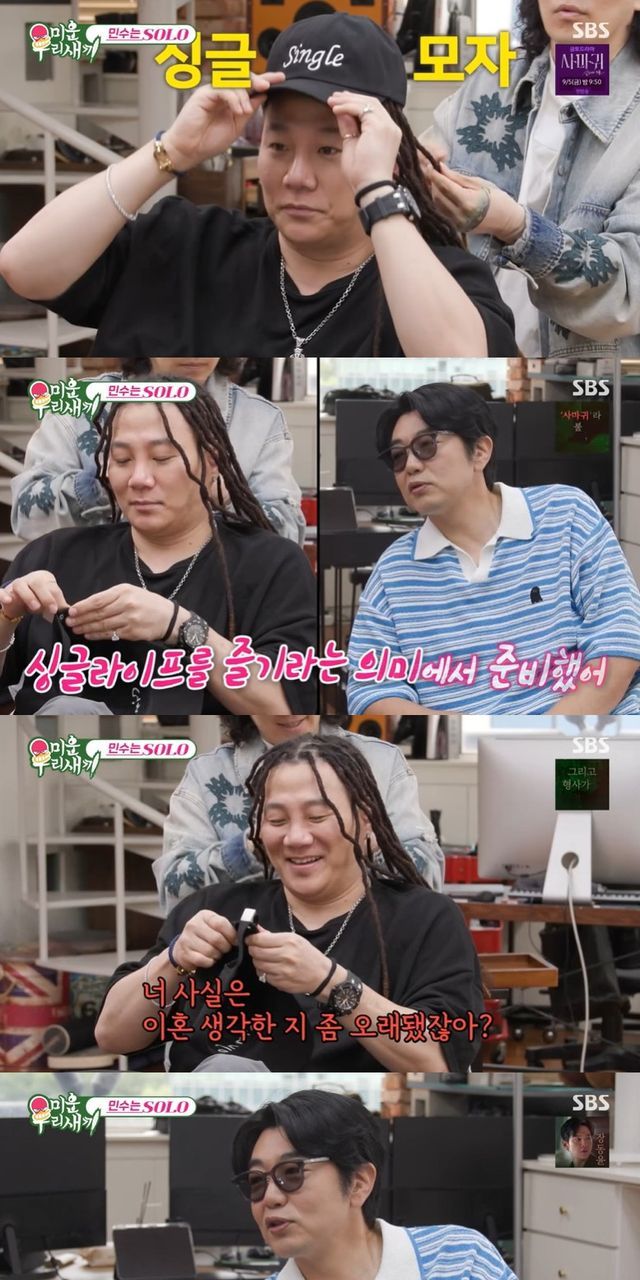 이종혁은 윤민수에게 '싱글'이라고 적힌 모자를 선물하며 "사실은 (이혼 생각한 지) 좀 오래됐지 않냐. 약간 서류만 늦은 거 아니였냐"고 운을 뗐다.
