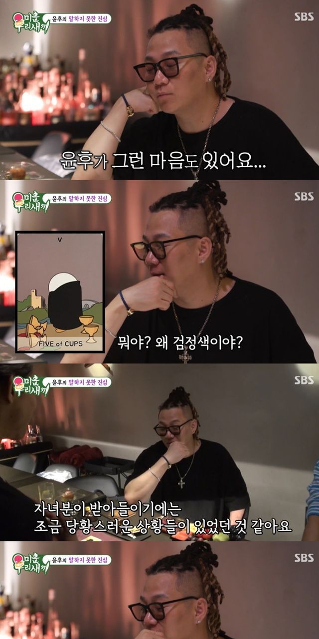가족끼리의 대화가 없었음을 밝힌 그는 아들 윤후에 대한 마음도 드러냈다. 타로점을 보러 간 윤민수는 아들의 속마음에 대한 점을 봤다.