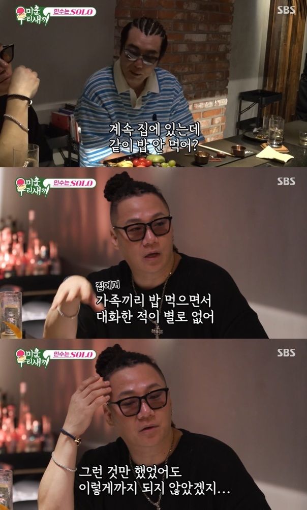 그는 "솔직히 그걸 못한 게 되게 후회스러운 게 많다. 모임할 때나 밥을 먹지, 가족끼리 밥 먹으며 대화한 적이 별로 없다. 그런 것만 좀 했어도 이렇게까지 되진 않았을 거라는 생각을 많이 하게 되더라"고 솔직히 밝혔다.