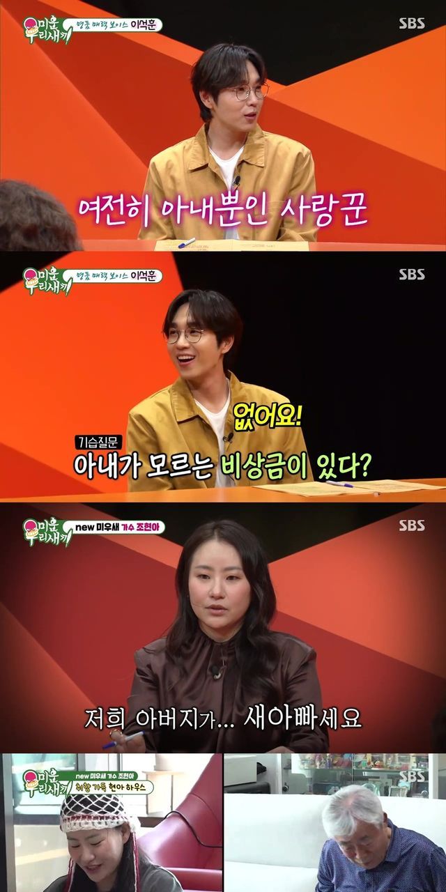 또 이석훈은 수익, 저작권료 등 모든 경제권을 아내에게 넘긴 이유에 대해서도 밝혔다. 이석훈은 “뺏긴 것이 아니라 다 부탁한 것이다. 저보다 현명하고 수 계산이 빠르다. 저는 일하고 아내는 재무 관련 일을 다 알아서 하니 저는 편하다. 그러면서 나 쓸 것은 다 쓴다”고 말했다. 이어진 비상금 질문에는 “없다”고 선을 그으며 “공인인증서를 아내가 모두 알고 있어서 그렇게 될 수가 없다”며 철저한 ‘아내 바라기’ 면모를 다시 한 번 보여줬다.