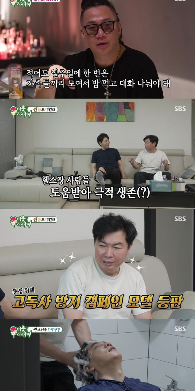 배우 김승수는 피지컬 회복을 위해 무리한 운동을 하다 무릎 내측 인대 부상을 입고 이어 대상포진까지 겹쳐 28일간 집콕 생활을 이어가고 있는 상황. 이를 지켜보던 임원희는 김승수를 위해 직접 샴푸를 해주고, 병원까지 웨건에 태워 끌고 가는 ‘짠내나는 브로맨스’를 보여줘 웃음과 감동을 동시에 선사했다.
