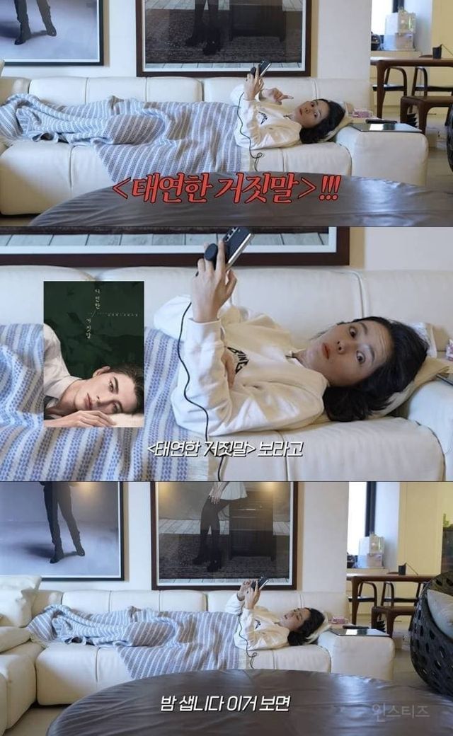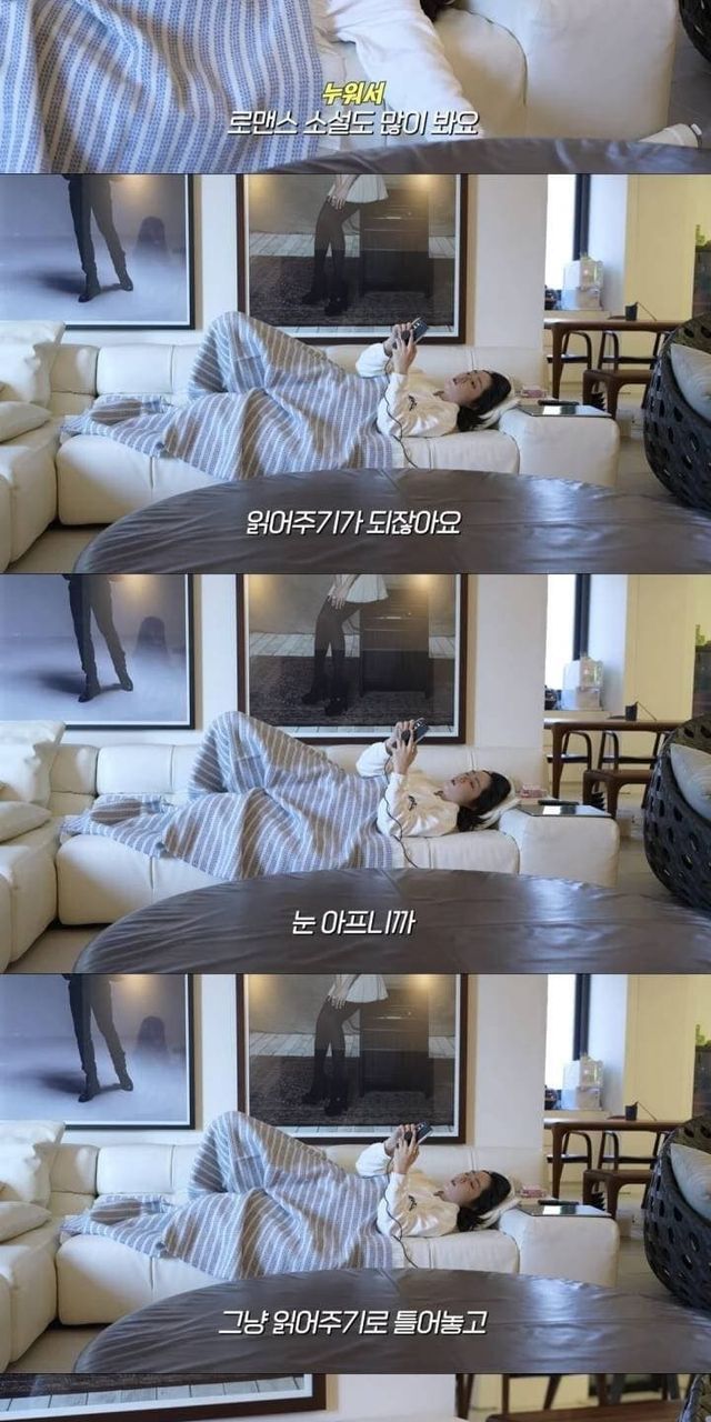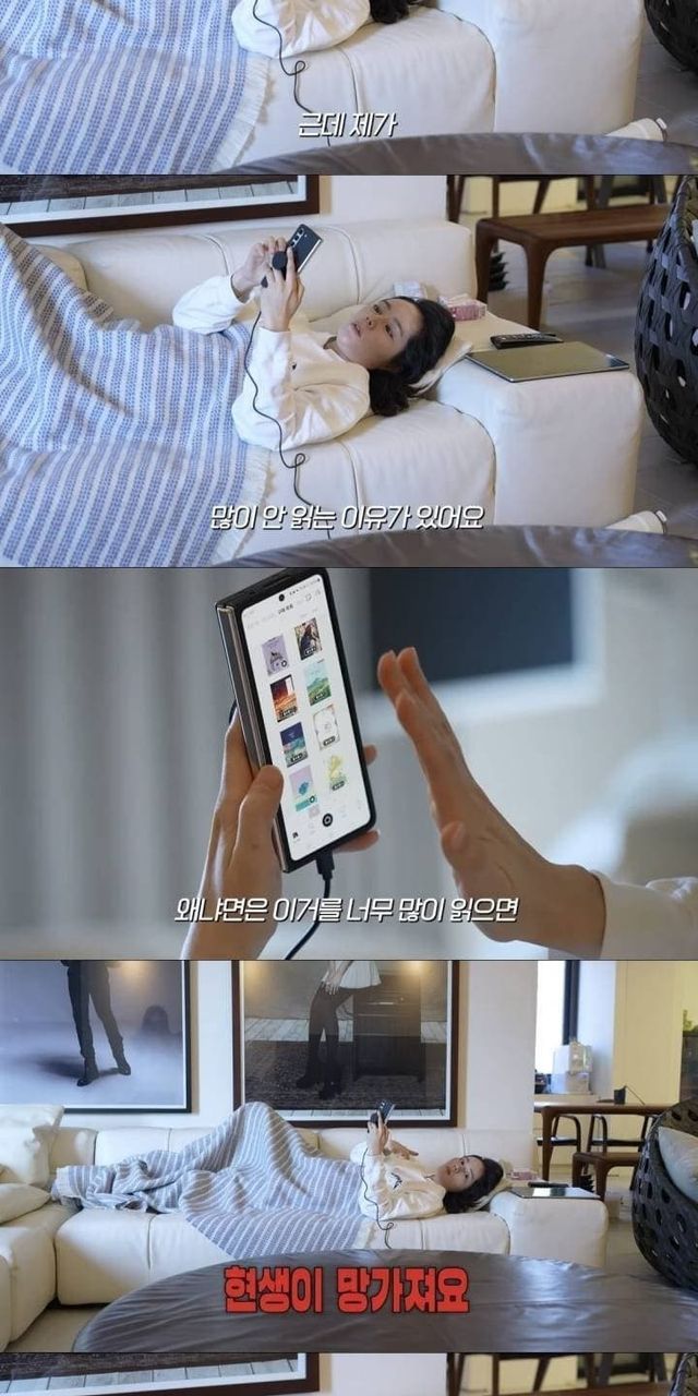누워서 리디북스 웹소설 보는 한가인