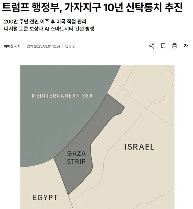 이스라엘 가자지구 지역 10년간 신탁통치 추진한다고 함