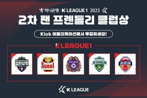 프로축구 K리그를 총괄하는 한국프로축구연맹이 2025시즌 2차 K리그1 '팬 프렌들리 클럽상' 팬 투표를 오는 2일부터 4일까지 3일간 실시한다고 1일 밝혔다.