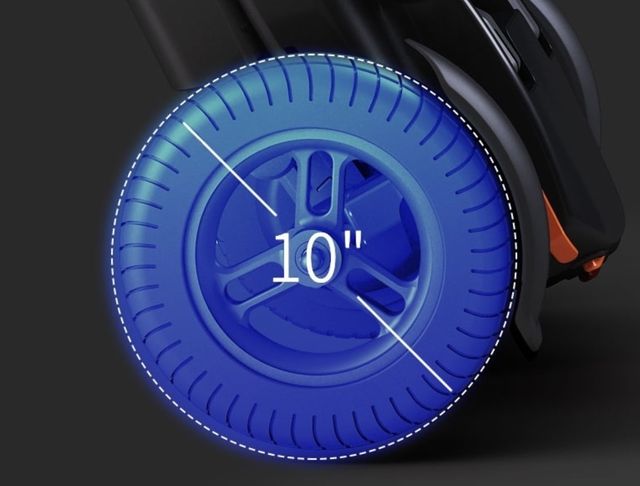 프레임은 알루미늄으로 제작됐으며, 최대 120kg까지 탑승할 수 있다. 후방에는 공기압 타이어가 있어 충격을 흡수하며, 전방에는 고무 솔리드 타이어가 장착됐다. 전륜 내부에는 모터가 있으며, 펑크가 나지 않는 구조라 이동을 계속할 수 있다. 최고 속도는 시속 6.4km로, 보행 속도와 비슷하다.