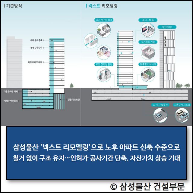 김상국 삼성물산 부사장은 "넥스트 리모델링은 건축물의 생애주기를 연장하는 가장 합리적인 해법"이라며 "노후 주거단지에 대한 다양한 재생 모델을 시장에 제안하고 정착시켜 주거 문화를 선도하는 기업의 역할과 책임을 다하겠다"라고 전했다.