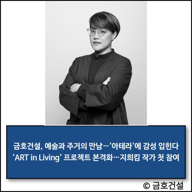 ART in Living은 금호영아티스트 출신 작가들이 아테라 단지에 예술적 감각을 최대한 끌어올려 단순한 주거 공간을 넘어 예술이 흐르고, 예술이 묻어나는 공간으로 탈바꿈시켜 나갈 계획이다. 그 첫 시작으로, 울산광역시 '문수로 아테라'에 독창적인 미학과 감각으로 주목받는 지희킴 작가가 참여한다.